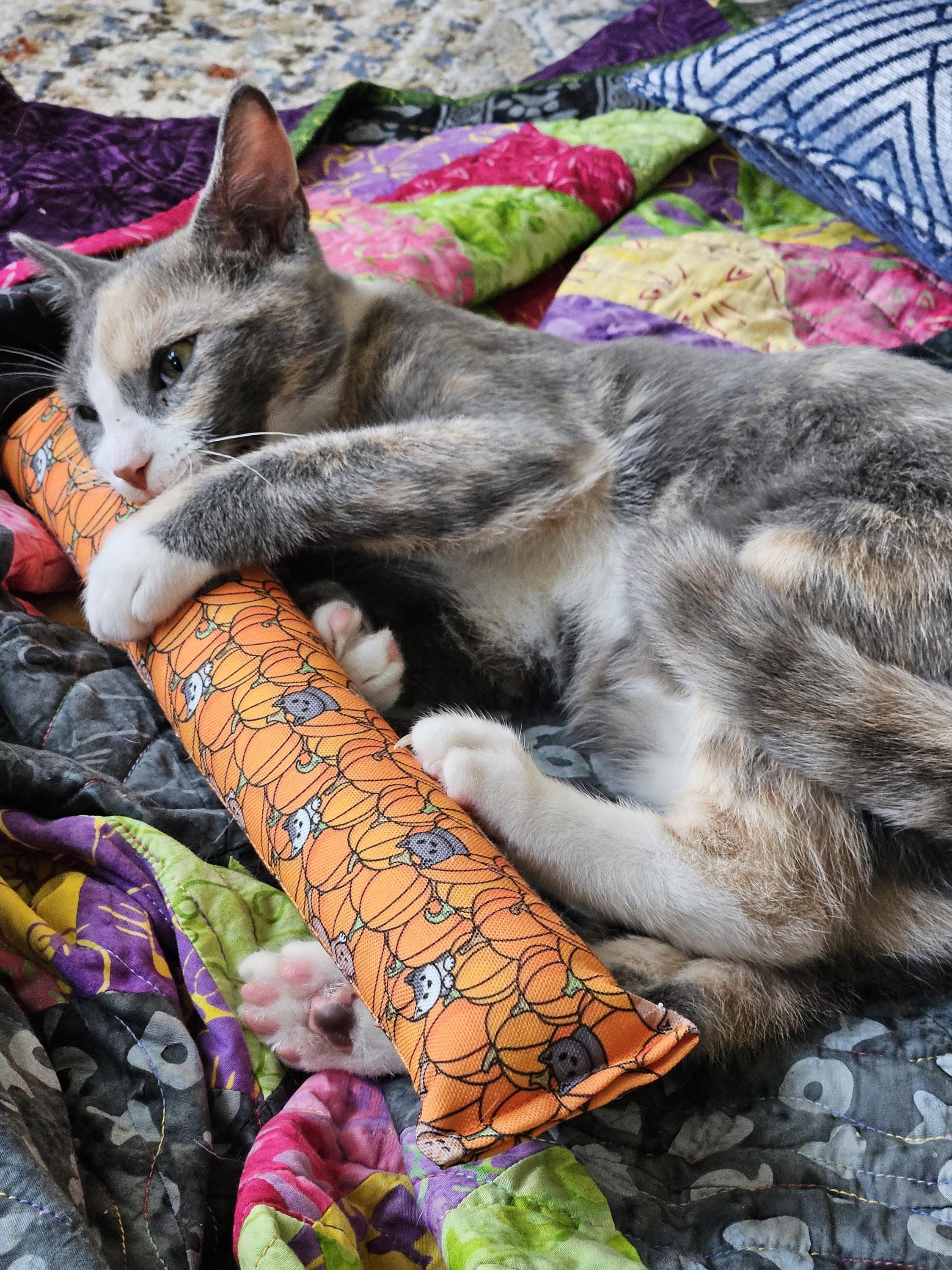 Eco-kickers are made from a special canvas that is 50% recycled and super tough and durable - perfect for a kitty that loves to bunny kick!