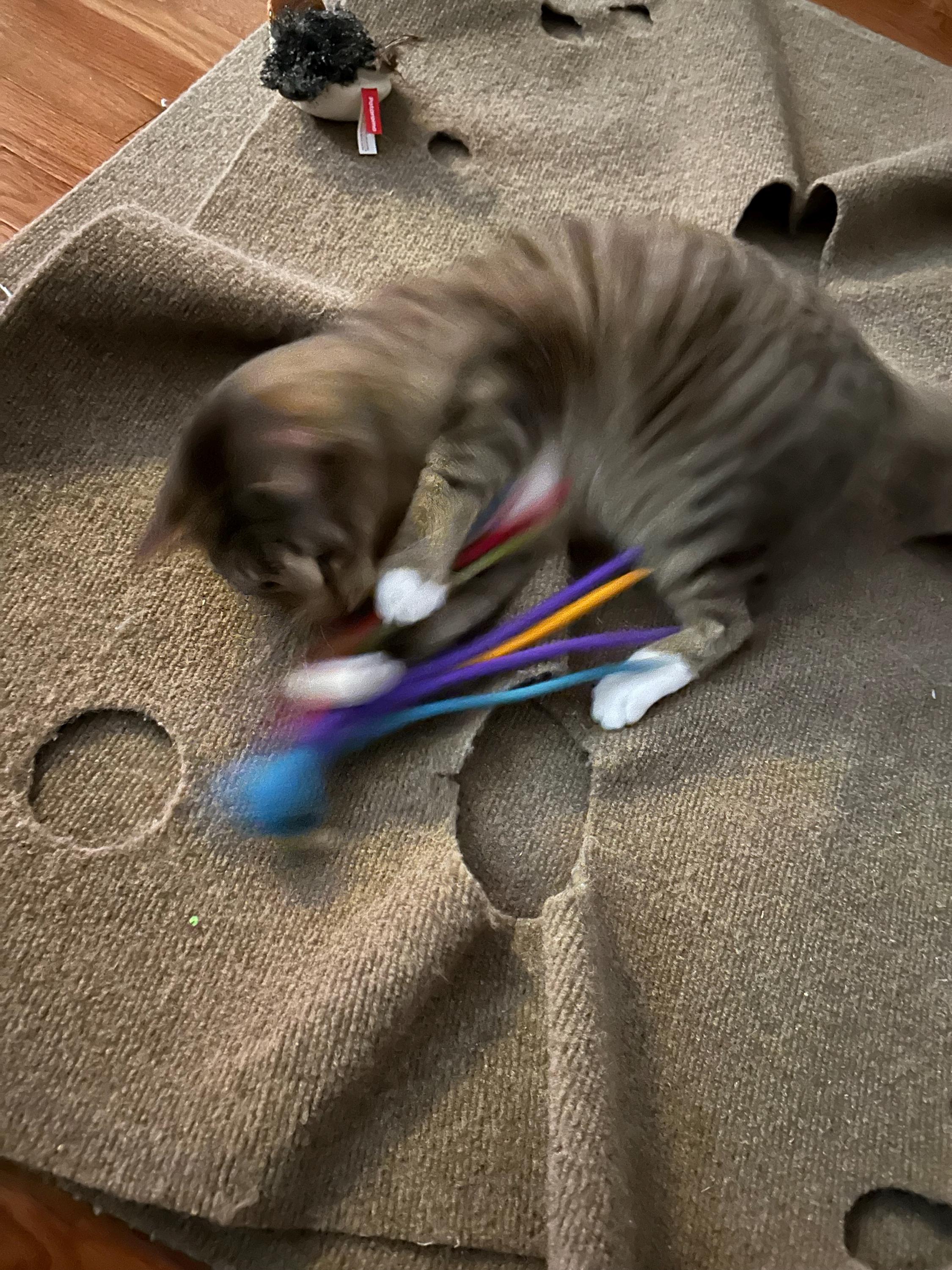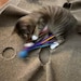 My little foster fail came to me with a broken jaw and missing most of his teeth. He loves to chew on soft things, but so many cat toys are toxic or unsafe. I was so glad to find these wool toys. They are beautifully made and my cat LOVES them! This bird toy is his favorite, FAVORITE! he drags it around the house with him, which he has never done before. I’d love a version without the bell, but I’ll probably need more of these incase it gets damaged or lost. So grateful for these safer, and beautiful, toys! I tried to get a better picture but realized his excitement might encourage someone lol