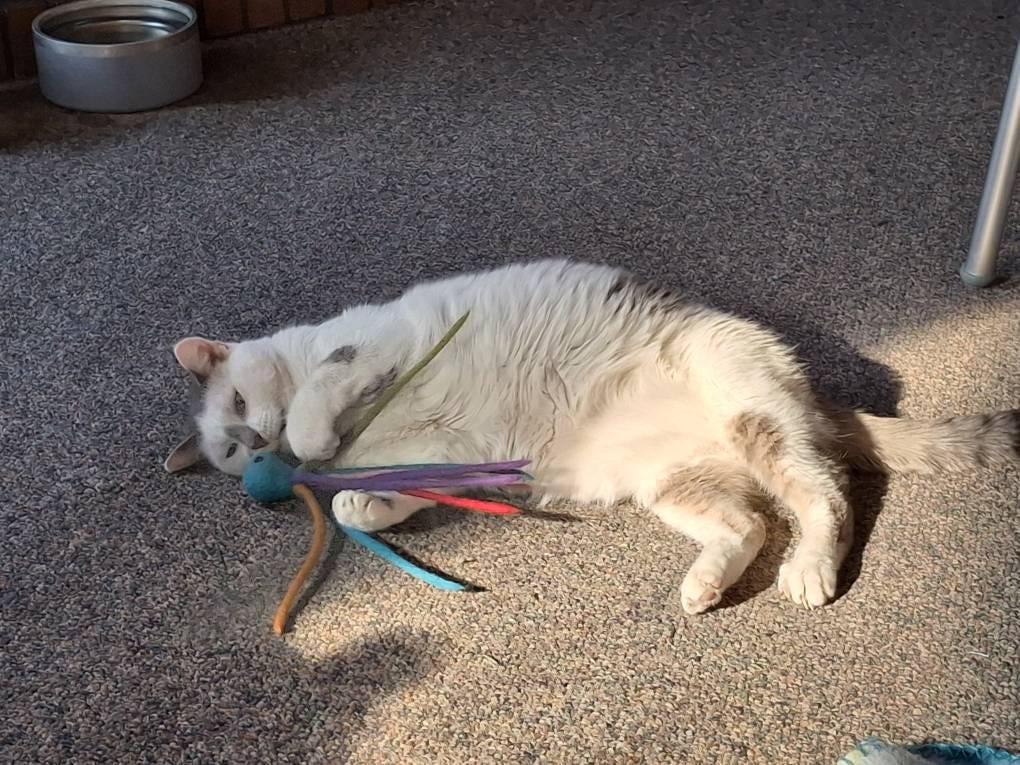 I've been struggling to find toys my cats will play with on their own and when I took this out of the package one of my cats immediately grabbed it and started using it as a kicker. They are still playing with it a week later so I see that as a win.