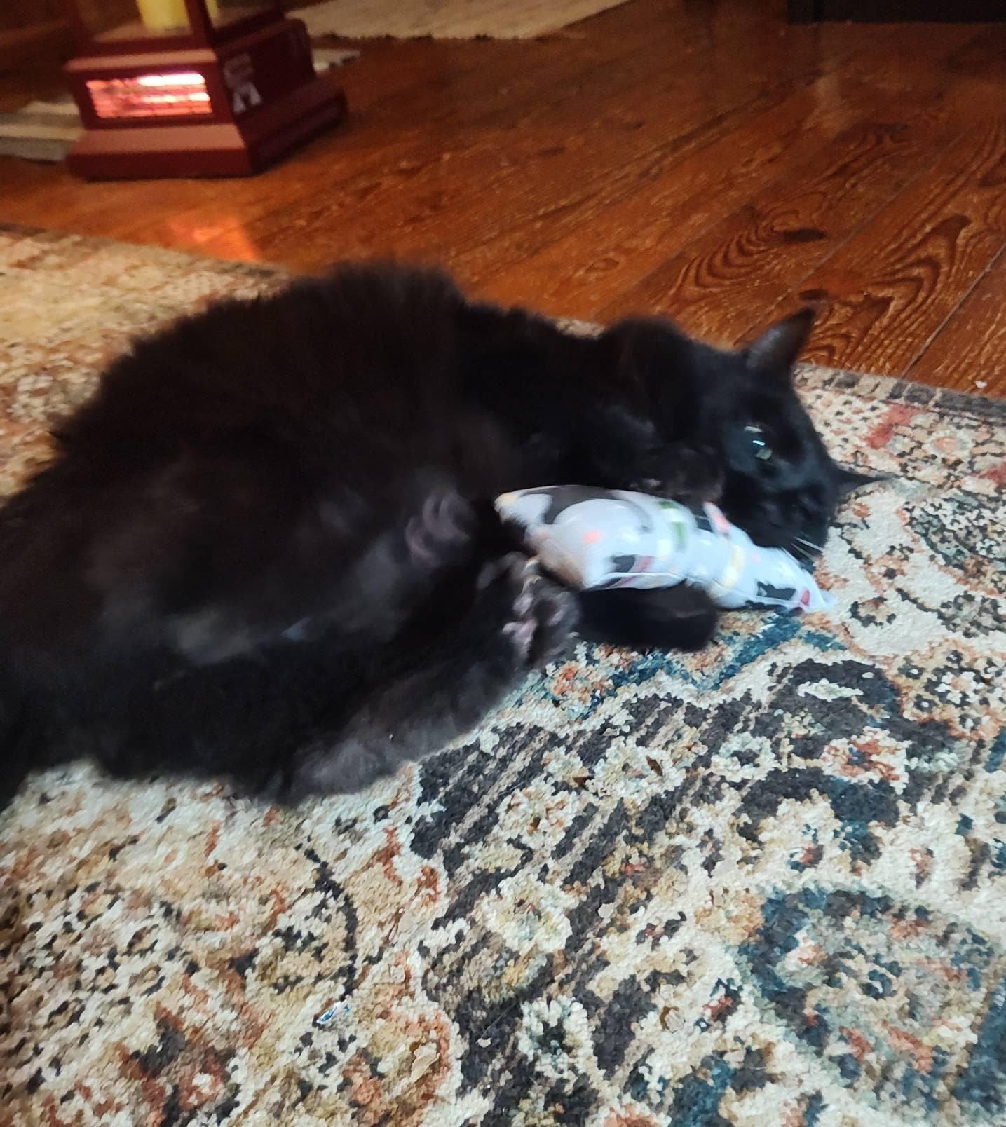 My daughters cats are loving their xmas gifts! Big enough for them to wrestle and hug their catnip pillows!